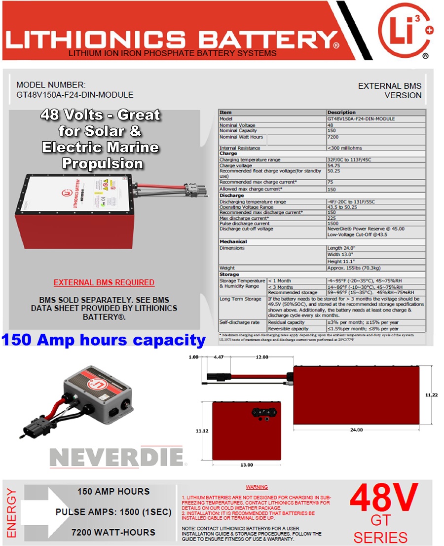 Powerful 48 Volt 150 Amp Hour Lithionics lithium